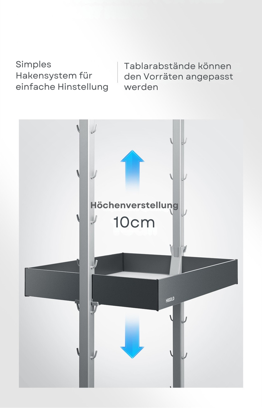 ✅ Flexible Ablagen – Wähle zwischen 4, 5 oder 6 Tablaren, die sich in der Höhe um bis zu 10 cm verstellen lassen – für eine individuelle Anpassung an deinen Stauraumbedarf.